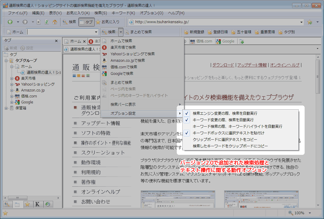 「通販検索の達人!」は、バージョン2.0でさまざまな新機能を追加しています。